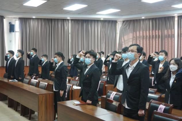 团委组织团学干部、团员代表在6号楼101会议室通过线上的方式观看会议直播。