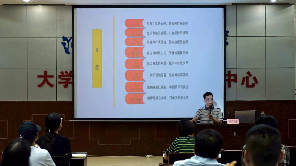 首先,两个单位的师生党员代表共同聆听了河南省委宣传部讲师团、马克思主义学院闫利春博士的专题报告《从红船到巨舰——“船说中国共产党的乘风破浪”》。闫老师从个人学习党史的感悟出发,以嘉兴南湖红船党的初心显现引入,通过讲述长征路上七小船、白洋淀里雁领队战船、渡江战役第一船等百年党史中一个个与“船”相关的红色故事,深刻总结了在一个世纪的风云变幻中,中国共产党勇担历史重任,在探索中奋斗、在开拓中前进,推动中国发生了翻天覆地变化的壮举。通过聆听专题报告,与会党员深受启示,表示要始终牢记党的初心和使命,始终牢记个人责任担当、立足岗位为学校建设发展做出贡献。