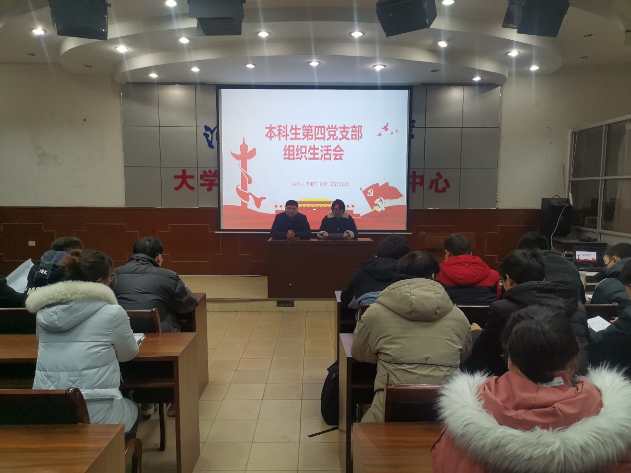 本科生第四支部在西苑校区6号楼101室开展了2020年度民主评议党员和组织生活会。学院党委副书记陈建峰老师出席本次会议,支部书记李艳红同志作为此次会议的主持人,本科生第四党支部全体党员参加了会议。