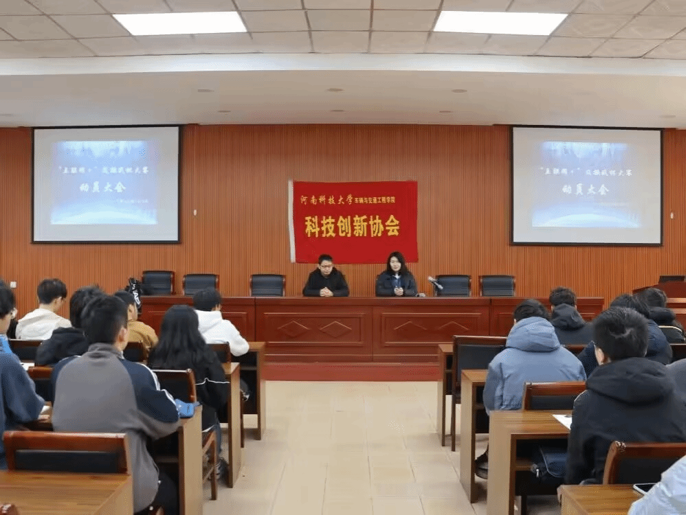 在西苑校区六号楼101会议室开展“互联网+”及挑战杯大赛动员大会。学院团委书记兼20级辅导员索榕、科技创新协会指导老师冯业和科技创新协会全体成员参加大会。